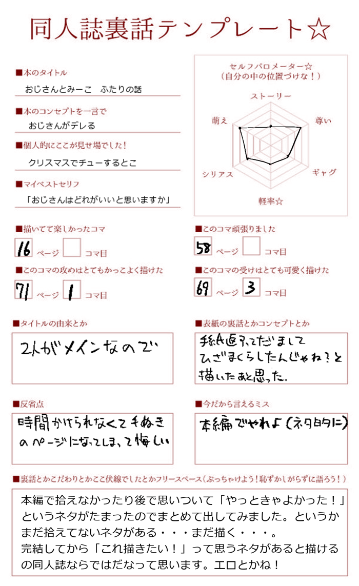 11月のコミティアで本出すの新しいネタだけに絞った方がいいかも(おじさんの話は来年にまとめてえいやって・・・描けたらいいな・・・)